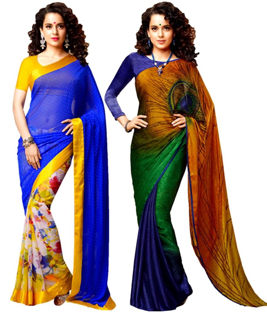 Flipkart Search - 7rainbow Pure Georgette Saree With Blouse Piece- Set Of 2 Aisha Art Crepe Printed Saree With Blouse Piece-combo Of 2- Snapdeal Fashion Discount Coupons