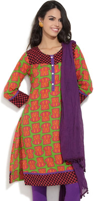 This kurta is a delight to own thanks to its ethnic design and comfy fabric.It features ethnic motifs in distinct alternating kalis, a bright coloured floral printed yoke with fabric buttons,a low U shaped back with metallic dori tie up and bright coloured and lurex bands at the sleeve hems.Wear this kurta with a bright coloured churidar and Chandelier earrings to look glam!Did you know: There is an abandoned village in Georgia called Kurta.