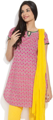 Aptly designed for summer!!Crafted from cotton, this casual everyday kurta features fun and trendy floral prints all over.The contrast detail at the comfy round neck, peekaboo keyhole and short sleevesadds a bright pop of colour to your style. The rounded hem cements your no fuss style, while the side slits ensure easy movement. Wear this with contrast leggings and summer thong sandals. Did you know: The first fashion magazine was published in Germany in 1586.Short sleeves :: Round neck with keyhole detail in front :: Rounded hem :: Side slits :: 100% Cotton :: Hand wash separately in cold water :: Do not soak, bleach, wring:: Hang dry in shade :: Warm iron