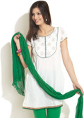 Simple and chic this kurta is sure to give you a stunning look! The metallic print yoke with contrast piping gives it an elegant look. The faux placket features fabric buttons with loops. Wear this kurta for a family get together or style it up for a dinner. A crushed emerald dupatta with white leggings will look stylish with it.